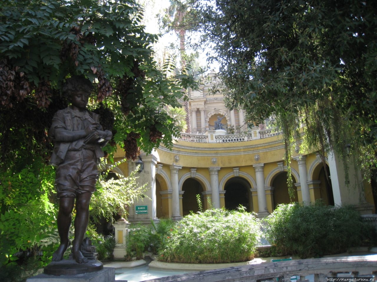 После регистрации первое, что встретится на вашем пути – это парадная арка величественного трехуровневого входа, который был построен между 1897 и 1903 годами, чтобы обеспечить новый доступ к холму со стороны Аламеда. Фонтан перед этой аркой был в ремонте, и мы не стали подходить к нему, но зато углядели среди зелени две скульптурные фигурки – мальчика и девочку, читающих книгу.