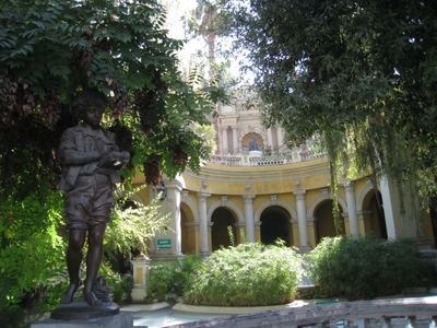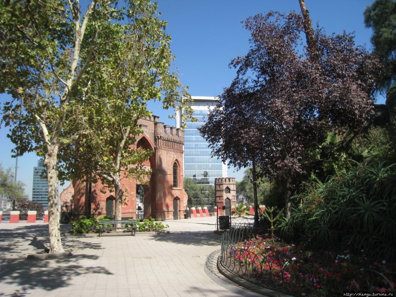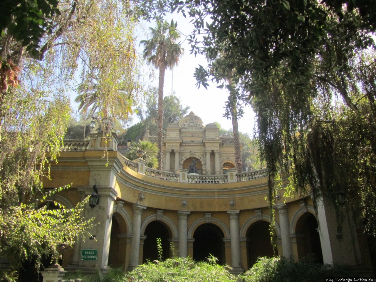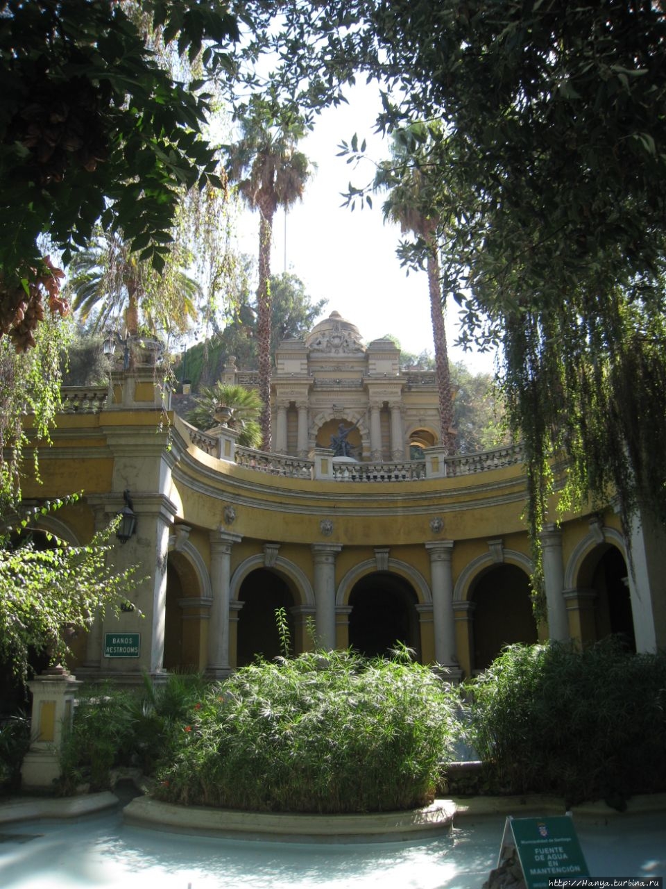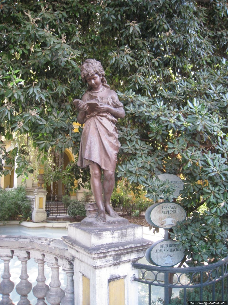 Прогулка по Авенида О’ Хиггинс и маленькие открытия. Ч.100), мы доходим до углового нижнего входа в Парк Санта Лусия. Вход оформлен красивыми металлическими воротами, за которыми при входе в парк нас «описали», отметив в гроссбухе, из какой страны мы прибыли. Заходили мы в парк снизу от Террасы Нептуна (Terraza Neptuno), и уже в «свободном парении» облазили его весь, начиная с подножия холма и постепенно поднимаясь к его верху.