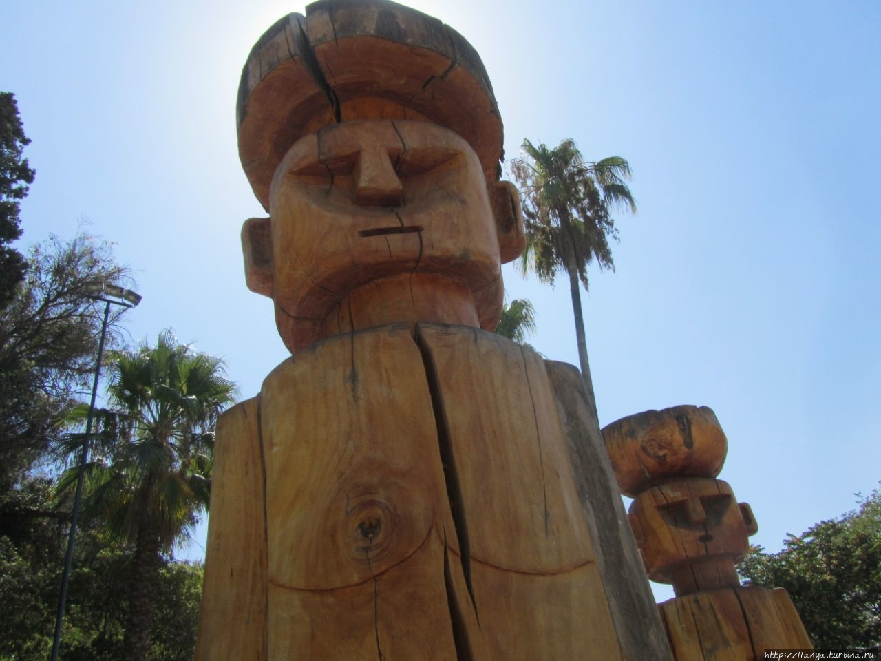 Прошли через Триумфальные ворота, и попали на Terraza Caupolican, где рассмотрели внимательнее памятник Caupolican и деревянные фигурки идолов. Подивились тяге оставить свой след в истории даже на камнях.