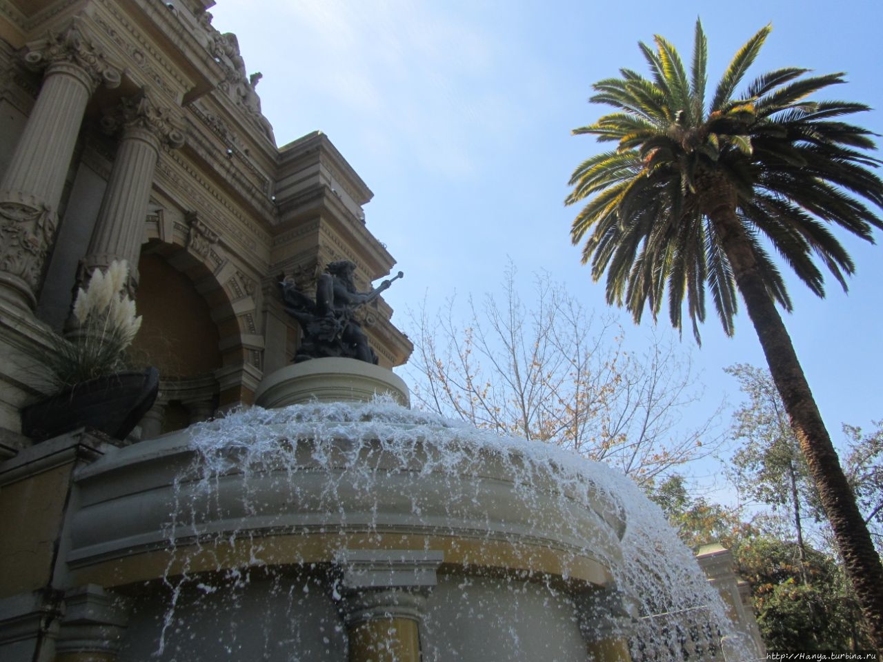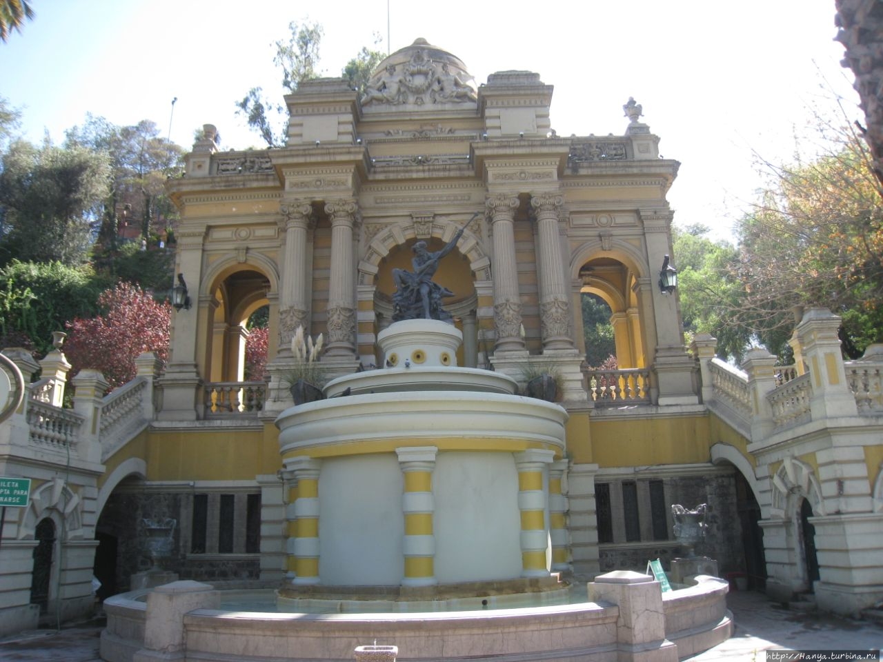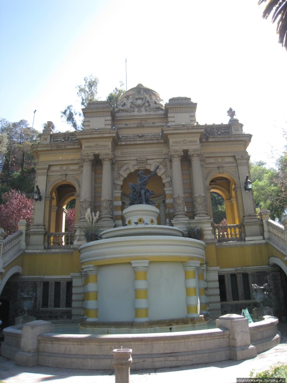 Конечно, чилийский аналог более простой по форме и сделан из бронзы, но естественная природа грота с лихвой добавляет прелести этому фонтану. В начале 20-го века, когда шло строительство монументального входа, арка-грот идеально вписалась в его конструкцию, обладающую балюстрадами и увенчанную куполом. Нептун по-прежнему дарует воду, и она стекает вниз, наполняя террасу жизненными звуками. Так должно было быть, но по каким-то причинам и этот фонтан не работал.