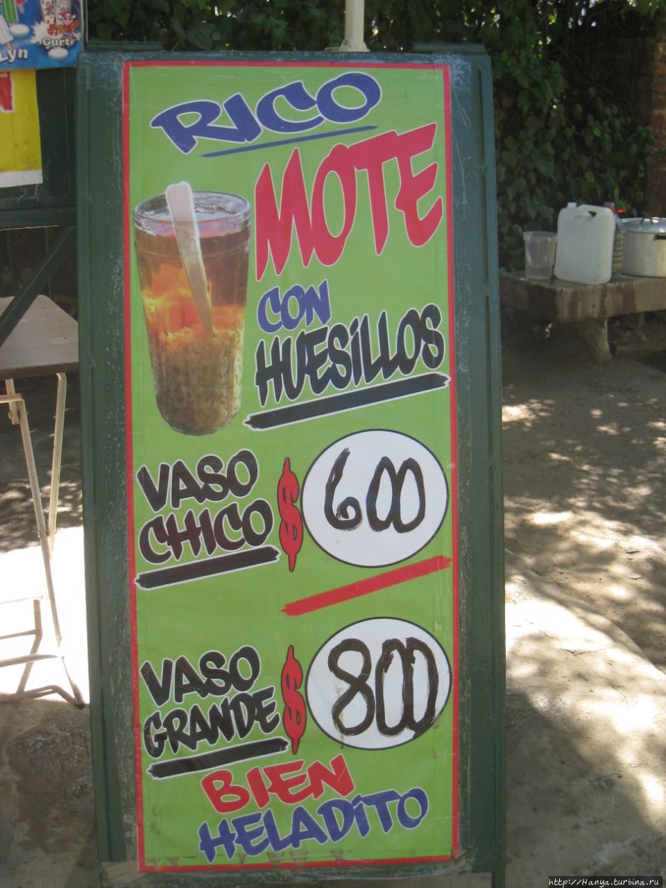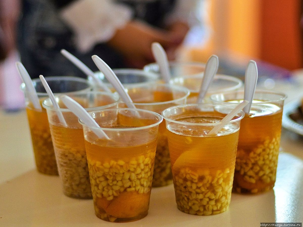 Наши размышления прервались, когда мы увидели, что здесь рядом продается местный компот Rice Mote Con Huessilos Heladito, который мы решили продегустировать в первый же день своего тура. Что сказать, жидкость ничего так, а в сочетании с крупой как-то не очень… Впрочем, это дело вкуса, ведь кому-то странен наш квас из хлеба.
