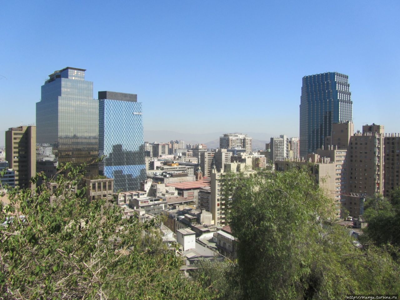 Снова взобрались на смотровую площадку и полюбовались архитектурными изысками столицы, и что уж, посмотреть было на что. На снимке слева — офисный небоскреб Las Americas постройки 1990 года (106 метров, 30 этажей), а справа — офисная башня Centenario 2000 года (113 метров, 31 этаж).