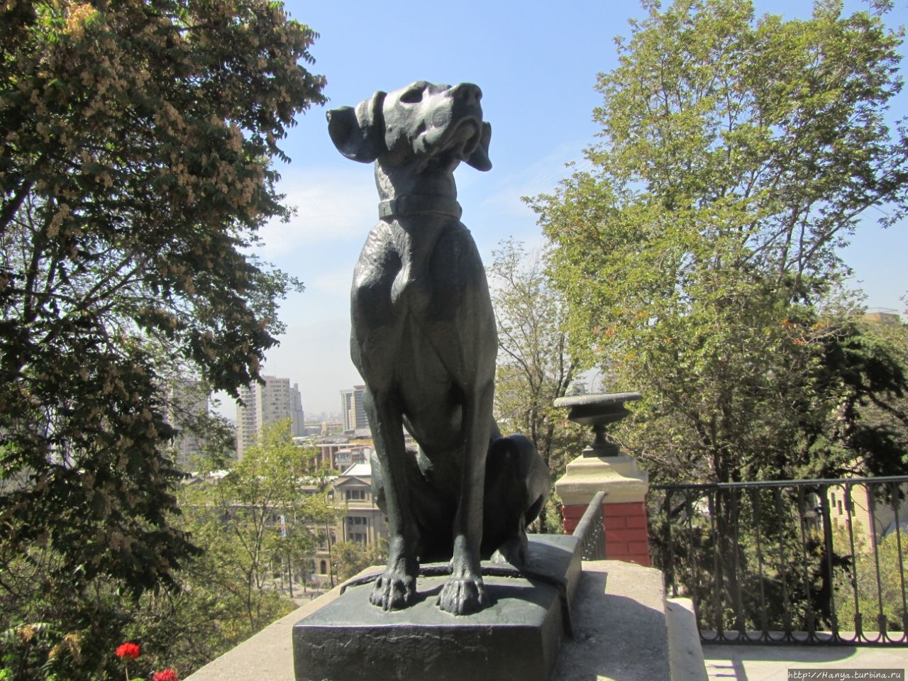 Чилийцы очень любят собак за их преданность и разум (только в Сантьяго их 1,5 миллиона), поэтому неудивительно, что на знаковом холме появилась горделивая фигура друга человека (автор скульпторы француз Альфред Jacquemart, 1824-1896).