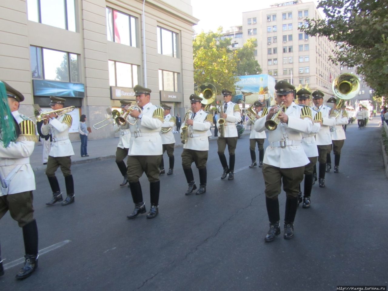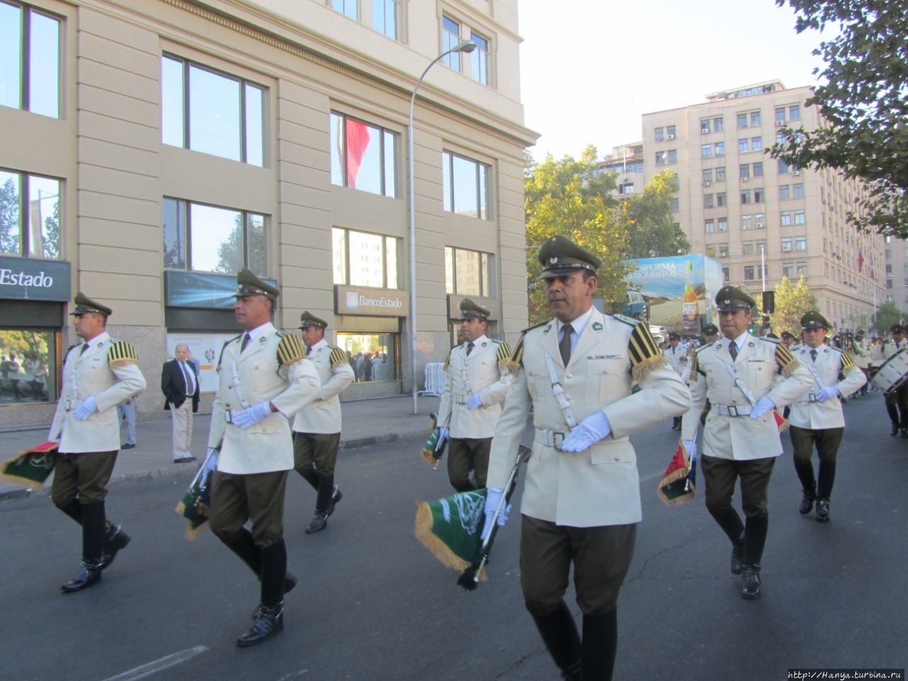 Подошли вовремя, почти сразу по боковой улице проследовало целое шествие военных, открывало которое симпатичная чилийка.