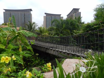 Аквапарк начинает свою работу с 11 часов. Пришлось некоторое время подождать. Время мы потратили прогулявшись по территории. Устроители отеля постарались воспроизвести у себя в фойе уголки Франции, Италии и целого ряда других стран. При желании потратить деньги, внутри Mangrove Tree Resort вы найдете чем заняться, как и на его территории. Здесь полным полно кафешек и магазинов.