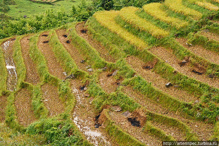 Чуть позже мои опасения насчет цели присутствия с нами хмонгов подтвердились – наш гид решительно повел нас по едва заметной тропе вверх, на залитые водой рисовые террасы.