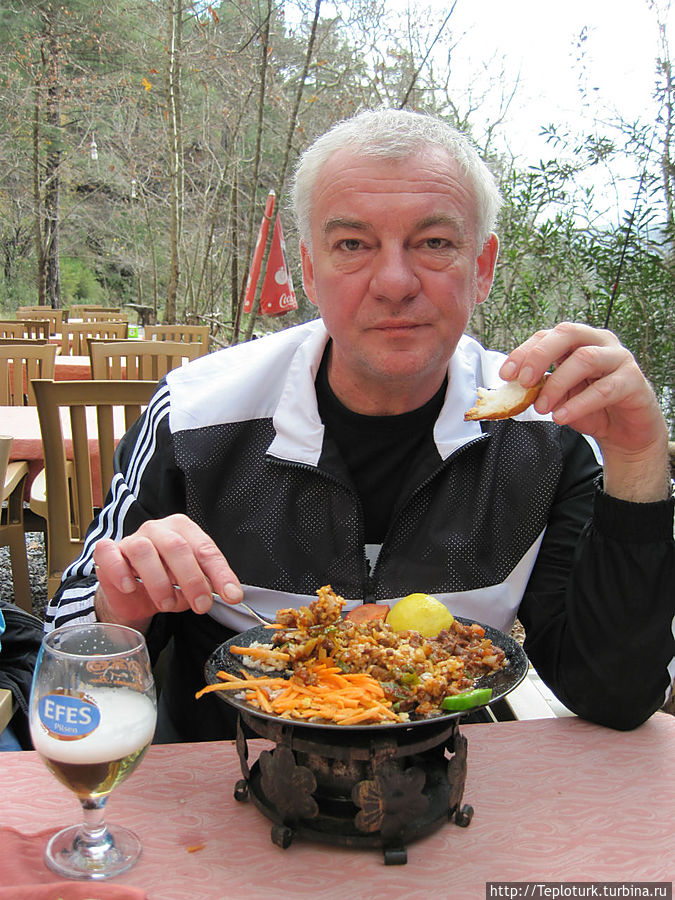 Здесь есть кафе, садки с форелью и запруда для купания в жару. Т.е. все что нужна для отдыха. Вход платный — 4 лиры, если приехал после полудня. Рано утром можно было заплатить в два раза меньше.