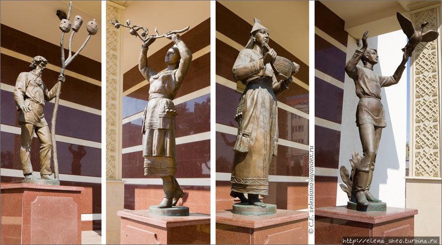 26. Советская улица продолжается. Мы идём к тому зданию с колоннами, которое видно за деревьями слева. Обратите внимание на ограду вдоль улицы — она сделан с включением национального орнамента. Национальный орнамент часто встречается в городе в том или ином виде. Мы видели его, например, на фасаде Дома Советов.