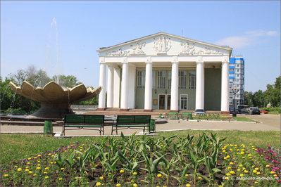 27. Театральная площадь с Русским драматическим театром Республики Мордовия (таково его полное название) и фонтаном "Каменный цветок".