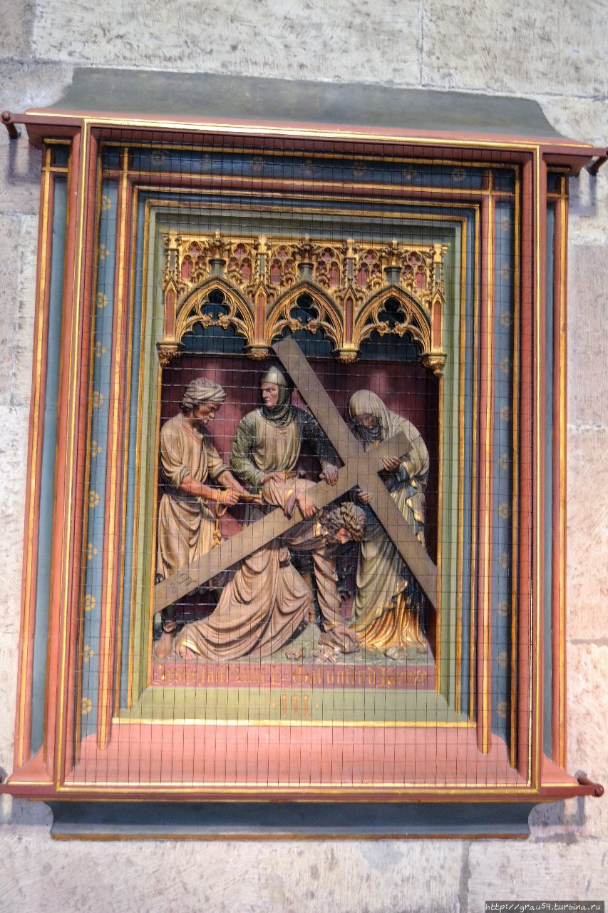 Кельнский собор. Часть 12. Крестный путь Христа часть Крестного пути отражена в скульптурах, что находятся внутри определённых рамок а часть просто в скульптурах. В католическом соборе в Саратове медальоны, отображающие крестного стояния, размещены в середине деревянных крестов.