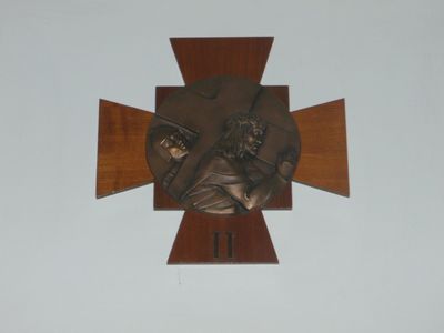 Кельнский собор. Часть 12. Крестный путь Христа часть Крестного пути отражена в скульптурах, что находятся внутри определённых рамок а часть просто в скульптурах. В католическом соборе в Саратове медальоны, отображающие крестного стояния, размещены в середине деревянных крестов.