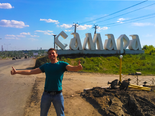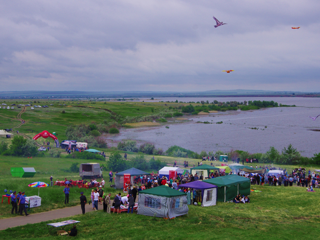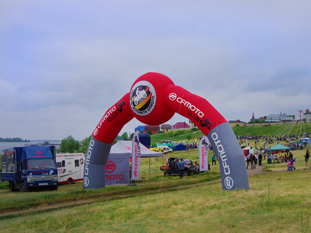 "Уже перед самым стартом в Самару Сергей, друг Игоря и Саши, предложил нам затусить на Саратовском Сабантуе. Татарский праздник — никто не пьет, только едят плов, залезают на столб за подарками и борются. "Будет губернатор и 25 тысяч народу" — рекламировал Сергей. Виталий дал добро, мы надули арку и она стала самым ярким пятном на всем сабантуйском пейзаже. "