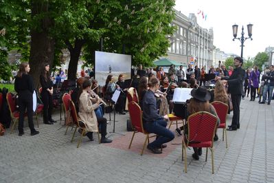 были правда лишь в одном месте, зато фотографий множество.Если в музее играли юные дарования, то возле музея исполнители были постарше.