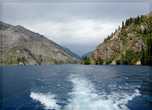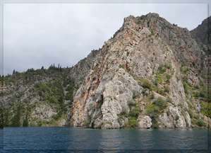 • Всё ближе поросший елями утёс, скрывающий проход постепенно сужающегося ущелья (средняя ширина ущелья – 650 метров).