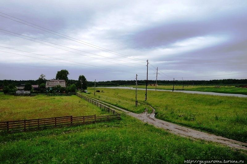 От Каргополя 5-8 км по Архангельскому тракту до указателя "Кипрово", далее поворот налево.