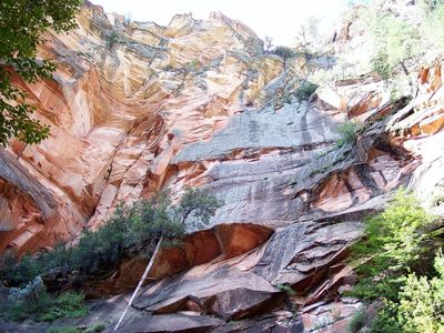 Стенки ущелья в этом месте сложены теми же породами, что и красные скалы Седоны.