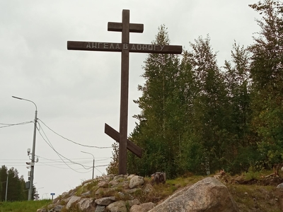 А на выезде на трассу установлен Поклонный крест с пожеланием ангела в дорогу.