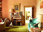 В интерьерах чувствуется дыхание былого благополучия: рассохшиеся деревянные полы и золоченые дубовые панели стен, резьба и инкрустации, кафельный пол, изображающий армию на марше, множество портретов персон сильных мира сего. Это стоит увидеть однажды... или, посмотрев в нашем фотоальбоме, решить, что это ни к чему.