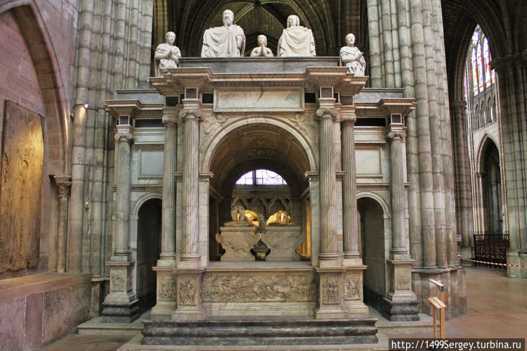 Опомнились лишь в 1814 году, когда спал революционный угар. Спешно нашли выброшенные останки, отсортировали их и вновь поместили в базилику. Со временем восстановили и утраченные надгробия. Увидеть сегодня всё великолепие Сен-Дени можно за 7 евро, именно столько стоит входной билет в базилику. Мы же предлагаем вам совершить экскурсию по усыпальнице французский королей совершенно бесплатно. Вы готовы? Тогда в путь, в прошлое королевства французского и его высочайших особ.