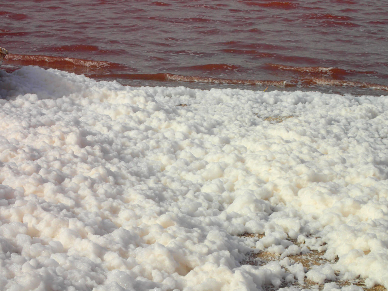 Такой цвет происходит вследствие наличия в воде триллионов бактерий рода Halobacterium.