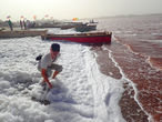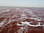 Такой цвет происходит вследствие наличия в воде триллионов бактерий рода Halobacterium.