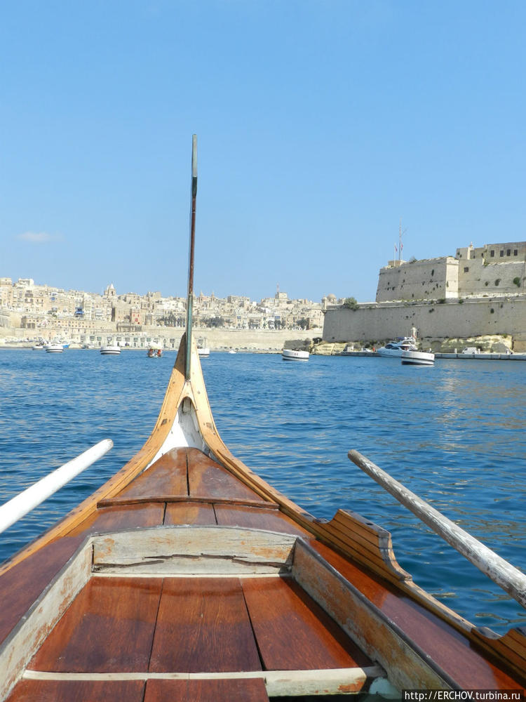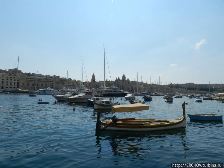 Бухта заполнена лодками, яхтами и катерами. На противоположной стороне в городе Витториоза над строениями слегка возвышаются купол церкви Святого Лаврентия и здание Военно-Морского музея.