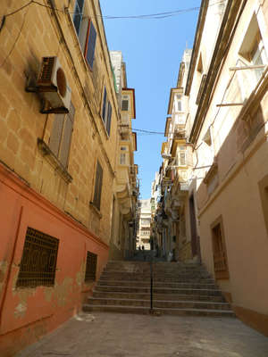 Общаясь с человеком, узнаёшь его характер, гуляя по городу, невольно ощущаешь его ауру. Движемся за гидом по узким улочкам Сенглеа. Здания стоят вплотную друг к другу. Город построен на холме, отчего здесь сплошные спуски и подъёмы, лестницы и ступени. Домам более 200 лет. Многие из них были сильно разрушены во время бомбёжек 1942 г.