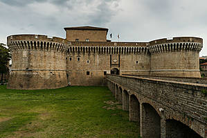 Сенигаллия — популярный морской курорт в Марке. Сенигаллия была основана еще в 4 веке до н.э., и стал первой римской колонией на берегу Адриатики. Несмотря на свою древнюю античную историю, город вряд ли может похвастать обилием достопримечательностей. Зато в Сенигаллии отличный пляж, протянувшийся на 13 км. Он считается одним из лучших пляжей Адриатики и особенно ценится благодаря золотистому песку. В середине мая здесь был еще несезон: море неспокойное, прохладно, ветрено и пасмурно. Городок был пока еще пустынный. Сейчас уже, конечно же, все по-другому.