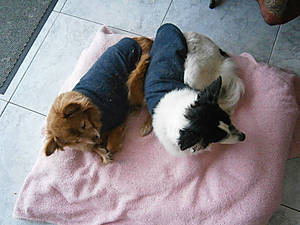 У этих людей были две собаки, птичка и рыбки. Одна собака была старая, глухая и слепая, её звали Трикси (так зовут и моего кролика), а вторая была молодая, но хромала, потому что её переехала машина, эту собачку звали Синди. Как звали птичку и рыбок я не знаю.
