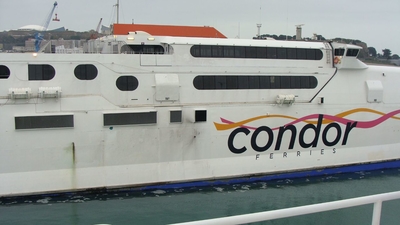 Ближе к вечеру я пришёл в порт, к пассажирскому терминалу кампании «Кондор». Отсюда я отправляюсь на пароме в короткое путешествие на Гернси. «Кондор» — современный быстроходный паром. Эта штука, загруженная машинами и людьми, развивает скорость по воде до 70 км/час.