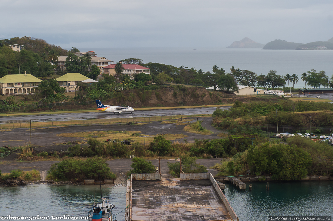 Аэропорт здесь расположен рядом с океанским портом, и оба они находятся всего в полутора километрах от центра столицы – Кастри.