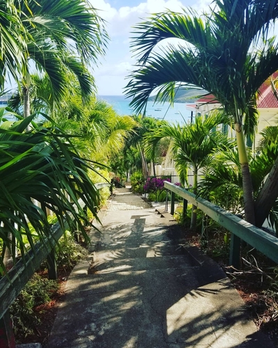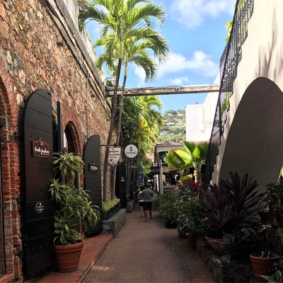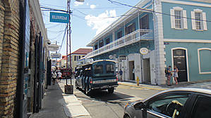 Ехали мы какой-то другой дорогой. И виды заметно отличались в лучшую сторону. Местами спуск был достаточно крутой. А вот и столица с красивым именем Шарлотта-Амалия.