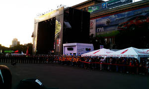 Огромная сцена с самым, опять «самым», большим экраном из Фан – зон чемпионата Европы.