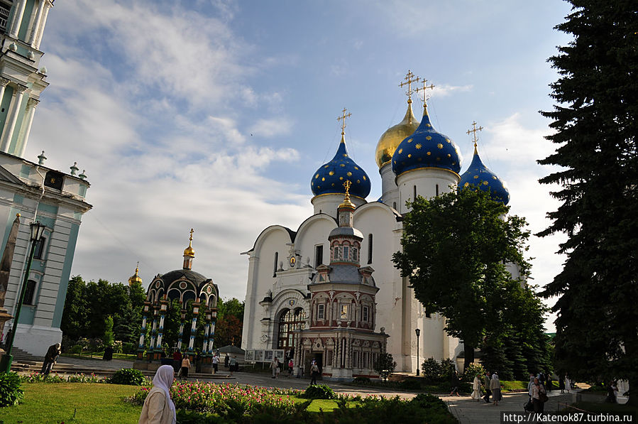 Территория лавры очень ухоженная, красивая. Этот монастырь привлекает очень много паломников. Там покоятся мощи Преподобного Сергия Радонежского. Правда, к ним попасть достаточно трудно — в тот день, когда мы были была огромная очередь.