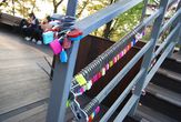 Замочки здесь не снимаются, как в других подобных местах, а остаются висеть годами. Приобрести красивые замочки можно здесь же.