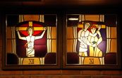 На стенах не менее интересные витражи