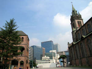 Католическая церковь находится на улице Мёндон,Церковь является кафедральным собором архиепархии Сеула и национальным историко архитектурным памятником.Собор является одним из представителей неоготической архитектуры,храм построен из красного и серого кирпича без внешних украшений,высота собора составляет 23 метра,высота шпиля на котором установлены часы поднимается на 45 метров.22 ноября 1977 года собор Мёндон был включён в список национальных памятников.