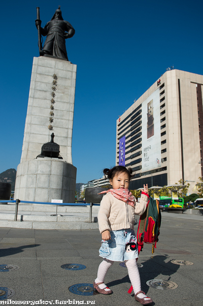 После осенней Москвы в Сеуле было очень жарко. Некоторые кореянки даже закрывали лицо, скрываясь от моего объектива такой погоды.))