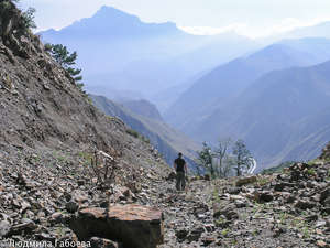 Нырнув в промежуток между многоэтажками в Мизуре, мы поднялись над Транс-Камом и, оставив по правой стороне Верхний Мизур, стали искать дорогу на Ход. На нашу удачу в Гусойта, мы пообщались с местной жительницей, которая сообщила нам примерные ориентиры.