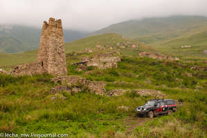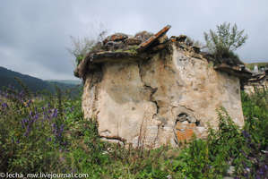Зафиксировав надгробия, склепы и развалины школы, в которой Едзиев проучился четыре года, мы спустились в нижнюю часть села к башням и развалинам жилых домов.