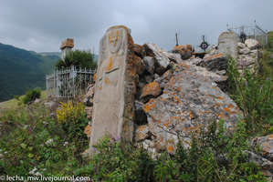 Но мы, пользуясь внедорожными возможностями своего автомобиля, решили отправиться на родину Сосланбека, в горное селение Ход, где кроме развалин его дома, на кладбище сконцентрировано наверное самое большое число надгробий его работы.