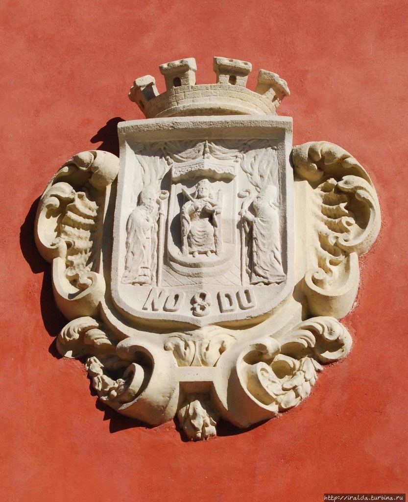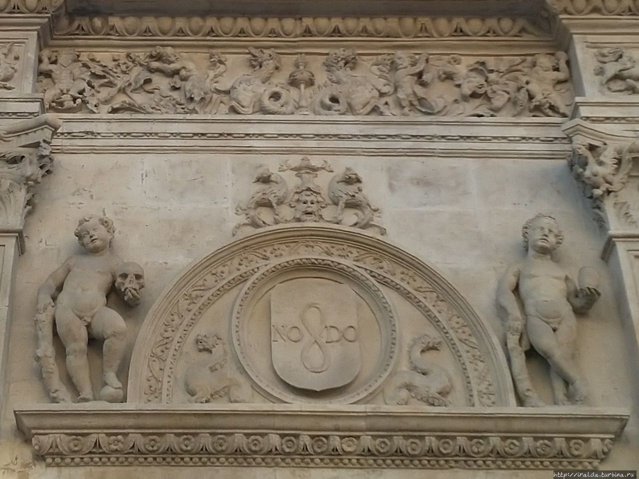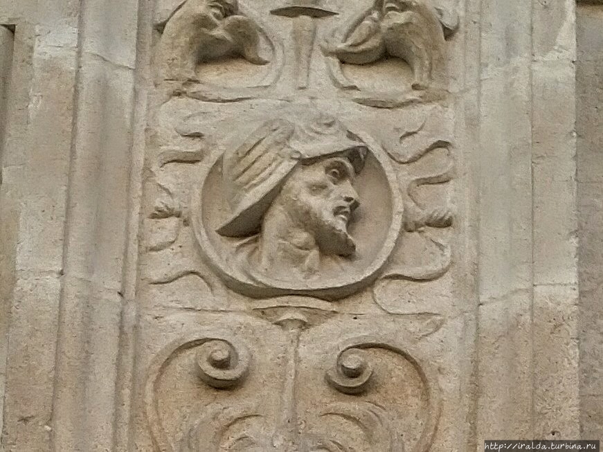 Фасад также украшают изображения геральдических эмблем Геракла и Цезаря, по легенде считающихся основателями города.