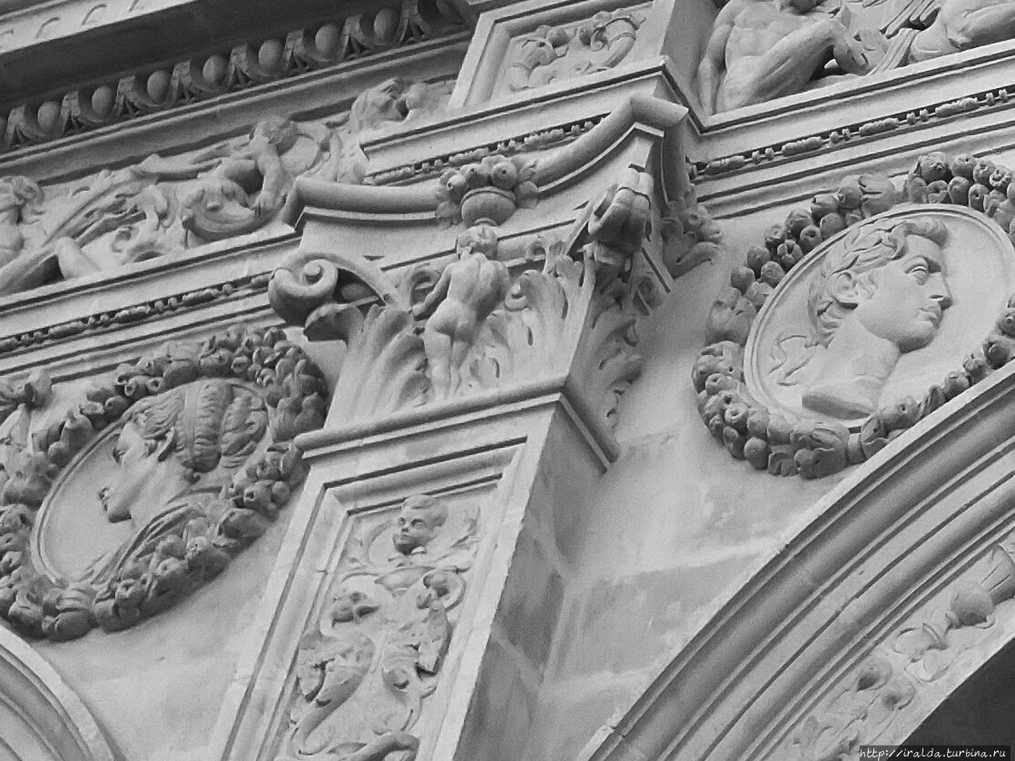 И никто мне не мешал рассматривать кропотливо и обильно украшенный фасад, который можно увидеть только подойдя близко к зданию.