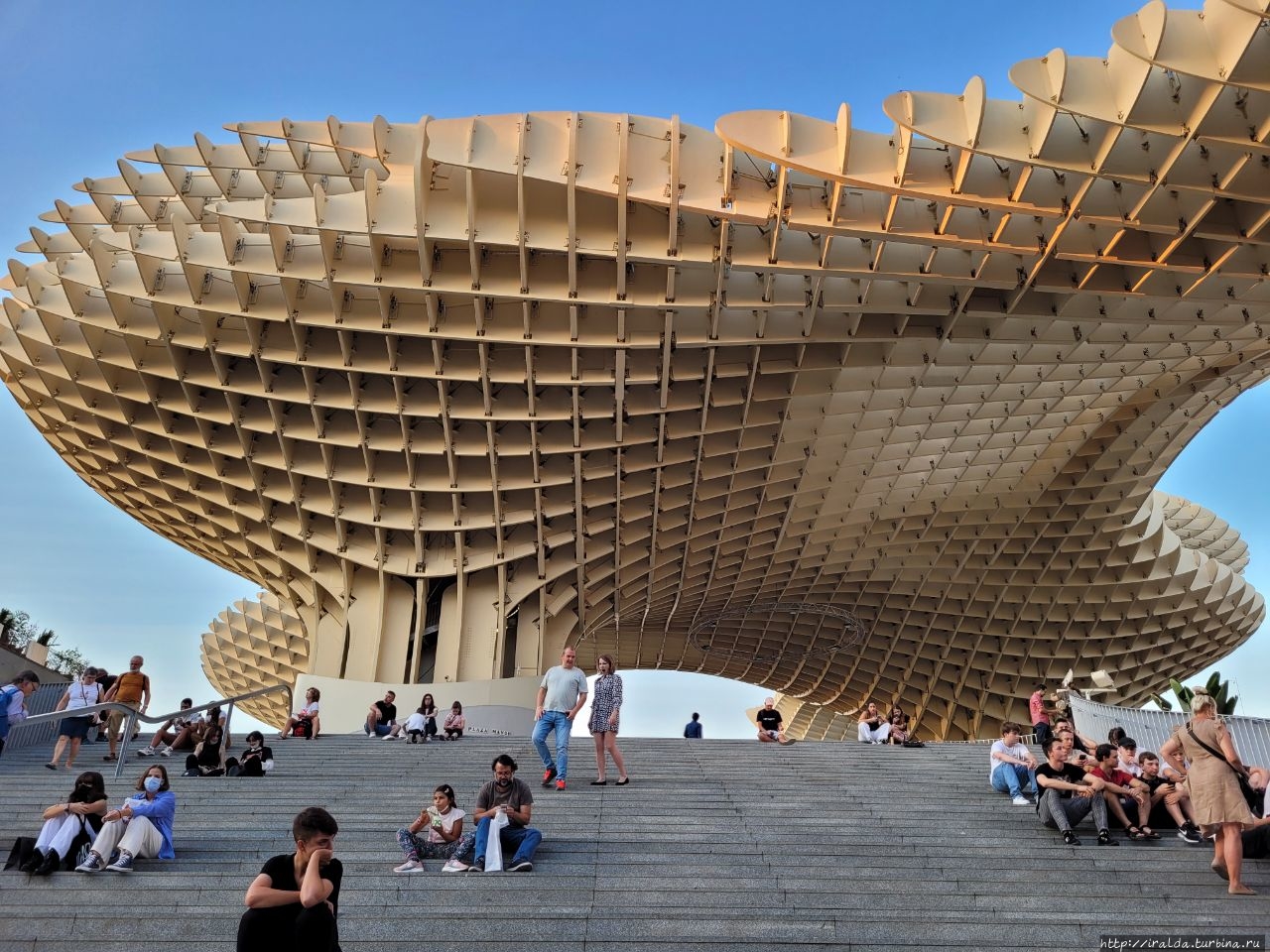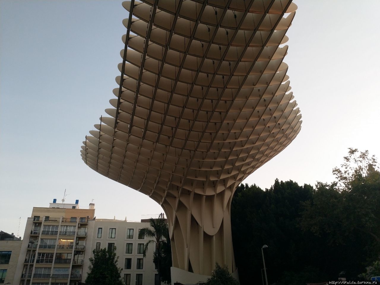 Но всё равно, было так неожиданно увидеть в центре Севильи, посреди плотно застроенных жилых кварталов старого города гигантское футуристическое сооружение, имя которому Метрополь Парасоль или городской зонтик.