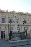 Белое здание рядом –монастырь Энкарнасьон (Convento de la Encarnacion), переделанный в конце XVI века из мечети. А длинное двухэтажное здание – дворец архиепископа (Palacio Arzobispal). Судя по названию здесь расположена резиденция архиепископа Севильи. Дворцовый фасад начала XVIII века относится к стилю позднего барокко, а интерьер этого великолепного сооружения украшен двумя прелестными двориками-патио в стиле ренессанс, оригинальной лестницей XVII века и изящным расписным сводом. Во время оккупации в 1810 году наполеоновской армией, дворец был резиденцией Маршала Сульта, командующего французскими войсками.