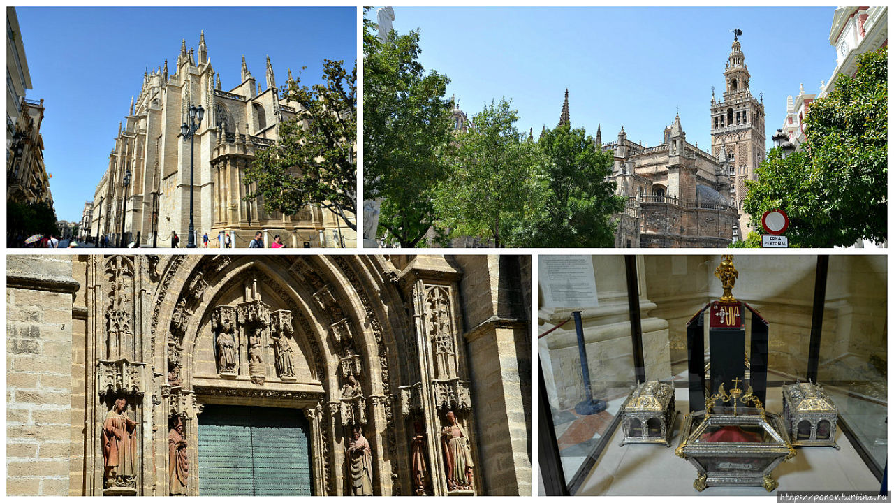 Большая часть достопримечательностей города находится в старой части, на левом берегу реки, самой яркой из которых является Севильский Кафедральный собор. Строился он на протяжении ста с лишним лет и поражает своим нарядным и, даже, торжественным видом, который как нельзя лучше подчеркивают высочайший купол и монументальные колонны.А мы двигаемся дальше…
