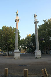 В 18 веке для симметрии на противоположной стороне площади установили еще две колонны. На вершине их находятся львы со щитами, символизирующие Севилью и Испанию.