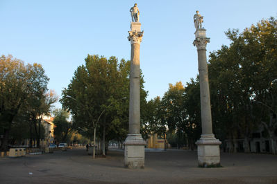 Ранним утром на второй день путешествия вышел я прогуляться на площадь, как выяснилось впоследствии с именем Alameda de Hercules. И моему еще не проснувшемуся взору предстала интересная картина. Огромная вытянутая площадь, чем то похожая на развалины стадионов греческих городов, а по краям ее стоят четыре высокие колонны с явной претензией на римские. Стало очень интересно куда я попал и что здесь делают колонны.