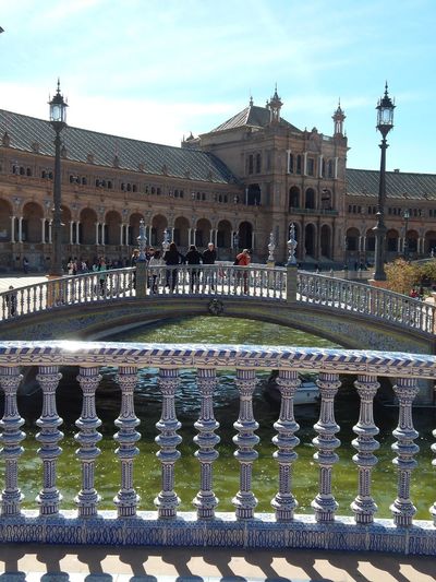 Создание архитектурного ансамбля Площади Испании (Plaza de España) было приурочено к Иберо-американской выставке 1929 года. Архитектурный стиль площади называют нео-мудехар или новомавританский. Он сочетает в себе элементы арт-деко и мавританского, т.е использует цветные изразцы. Спроэктировал этот шедевр архитектор Анибал Гонсалес, уроженец Севильи. (Aníbal González Álvarez-Ossorio (Sevilla, 10 de junio de 1876 — ibídem, 31 de mayo de 1929).