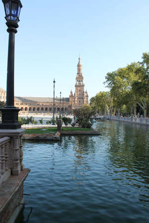 Площадь Испании появилась в городе чуть менее ста лет назад в 1929 году к Иберо-американской выставке. Здание, полукругом опоясывающее площадь, было построено архитектором Анибалем Гонсалесом.